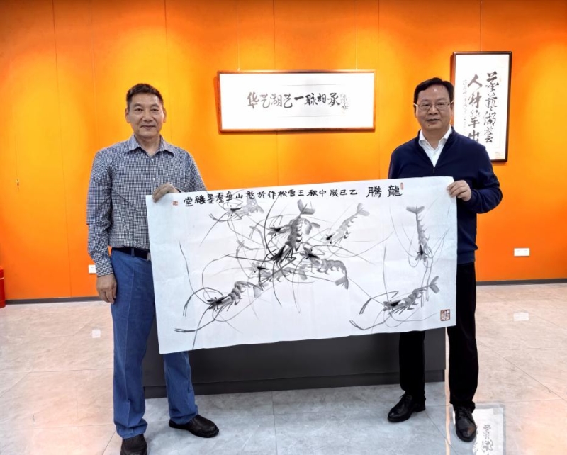 2025 年 9 月 22 日,我校杰出校友、华中艺专高艺师 19 班王憨山先生的夫人 ——93 岁高龄的谢继韫女士,携次子王雪松、女儿王艳艳、孙子王子津、孙女王梦驹一行,在学校三馆中心学术督导李雪蓉教授与主持工作的副主任雷松丽的陪同下,特意从双峰赶赴长沙,向学校慷慨捐赠艺术珍品,以助力王憨山先生母校 “湖艺美术馆” 的筹建工作。此次捐赠包括王憨山先生的画作《傍母浴娑花径舞,随群琢粟草堂春》、王雪松先生的画作《龙腾》,以及 22 本珍贵的精装画册。校友亲属的暖心善举,不仅为筹建中的美术馆增添了重量级藏品,更以实际行动为湖艺后学树立了 “酌水知源,不忘衔结” 的精神标杆。党委书记李越胜代表学校接受捐赠,并向谢继韫女士郑重颁发捐赠证书。党委副书记、校长周邦春,副校长黄新平、石洋出席了本次捐赠仪式。